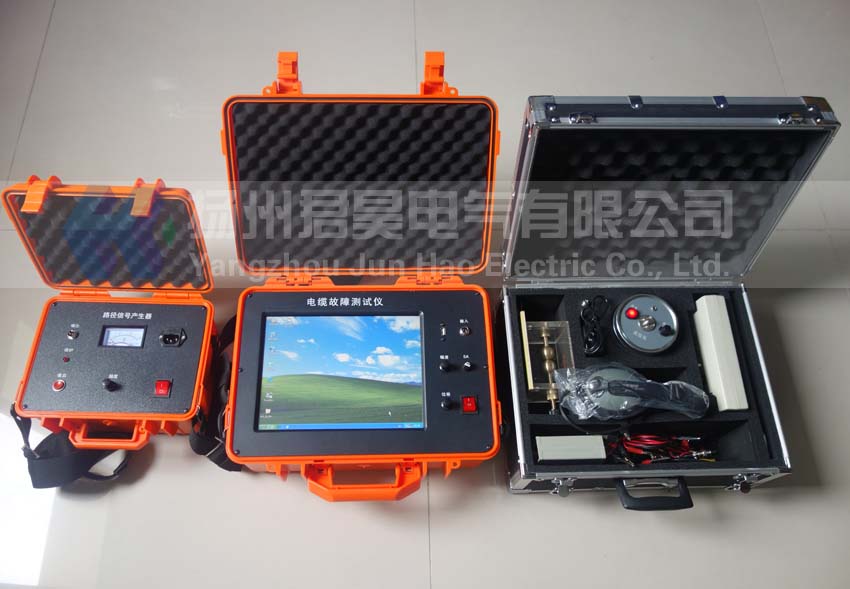JHDL-CM型觸摸屏式電纜故障測試儀由測試主機、路徑信號產(chǎn)生器、路徑信號接收器和定位儀等幾部分組成。