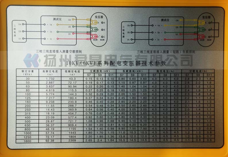 4、通過空載試驗可準確判定被測變壓器的型號,包括:S7、S9、S11、S13、S15、干變SCB9、SCB10、SCB11等各種類型的變壓器。